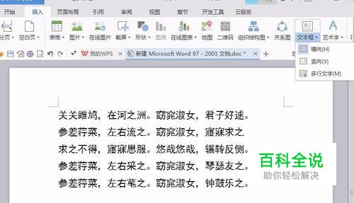 点击插入----文本框----竖向 文本框里有竖向,横向,多行文字。你可以根据需要选择。最好是根据你需要的文字方向选择。