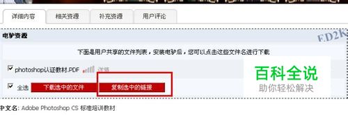 安装电驴后,打开电驴浏览器时搜索“photshop”,下面点击“详细内容”按钮“复制选中的链接”,如图