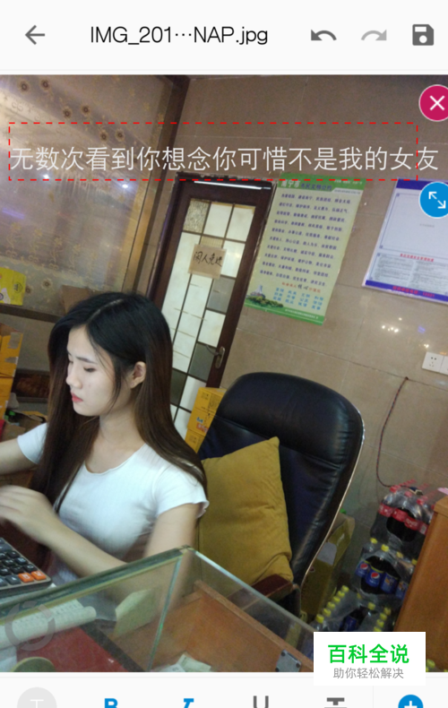 添加箭头,点选右下角的表情图标,然后选择箭头,拖动箭头即可。制作好了后,点击图片右上角的下箭头保存即可。