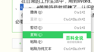 如果在其他文档中,有我们需要的,最快捷的当然是,复制、粘贴了; 至于方法,应该都会:鼠标右键,或者快捷键:Ctrl+C、Ctrl+V。