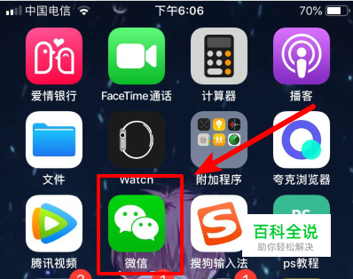 我们解锁手机后,选择自己安装的微信应用,点击进入到微信界面。