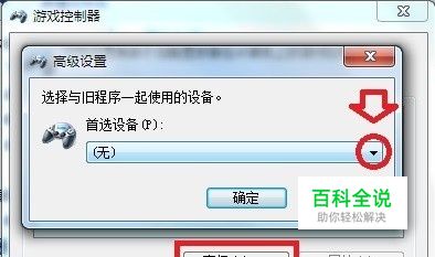 弹出游戏控制器设置框→高级。