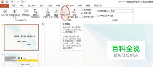 此时出现计时窗口,可以随时查看播放PPT的用时,在此过程中,我们可以用对话框中的不同按钮“暂停”播放、“重新”播放幻灯片、以及换到下一张幻灯片。