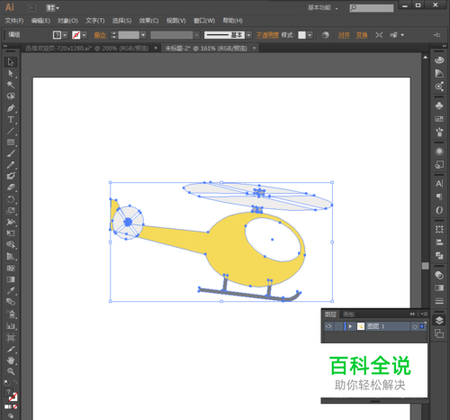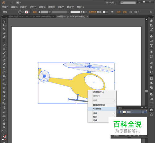 首先,在AI里面放个矢量图。我这是一个直升飞机哈。先取消编组,确保每一个对象都单独一层