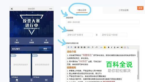 在基础设置下填写活动名称,设置活动时间,填写活动介绍。