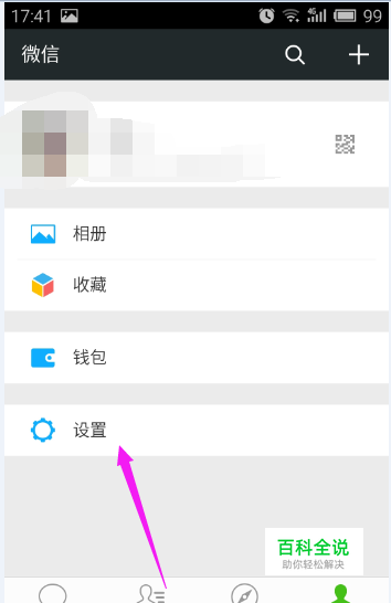 当我们进入自己的微信以后,我们点开“我”,进入之后,我们可以看到自己的头像,然后我们点击最下方的“设置”,如图。