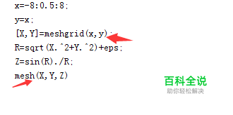 首先先介绍一下这两个函数各自使用的语法格式,mesh(x,y,z)和surf(x,y,z),不过在使用前需要用通过一个函数meshgrid生成网格,即先网格化变量