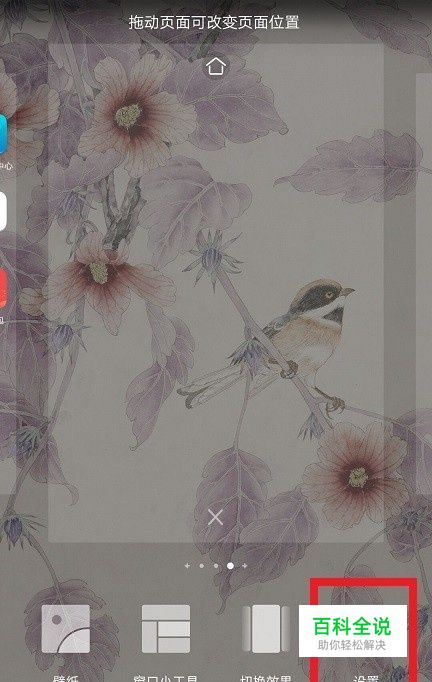 首先,咱们通过指肚长触桌面没有显标的空余位置,会出现这样一个附带房状的隐框,点‘设置’的字钮。