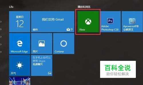 按下键盘上的win键,或点击电脑桌面左下角的win标志,在列表中选择Xbox将其打开。