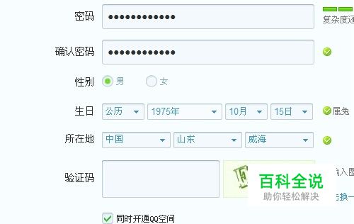 在注册信息页面填写手机号码、昵称、密码,选择性别、生日、所在地等详细信息。