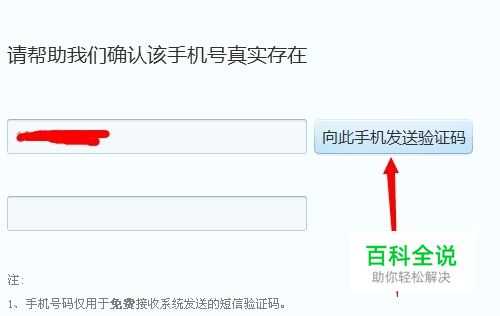 为了确认手机号码的存在,系统要求进行手机验证码验证,点击“向此手机发送验证码”。