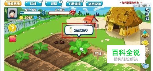 到朋友的农场逛逛的时候,鼠标指向农作物,即可查看还有多长时间可以收获,然后守株待“收”: