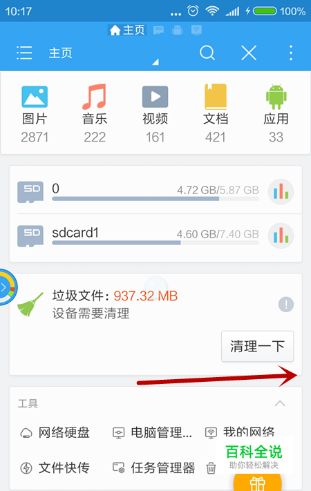 如图所示我们将ES文件浏览器的这个页面,滑到右面的页面。