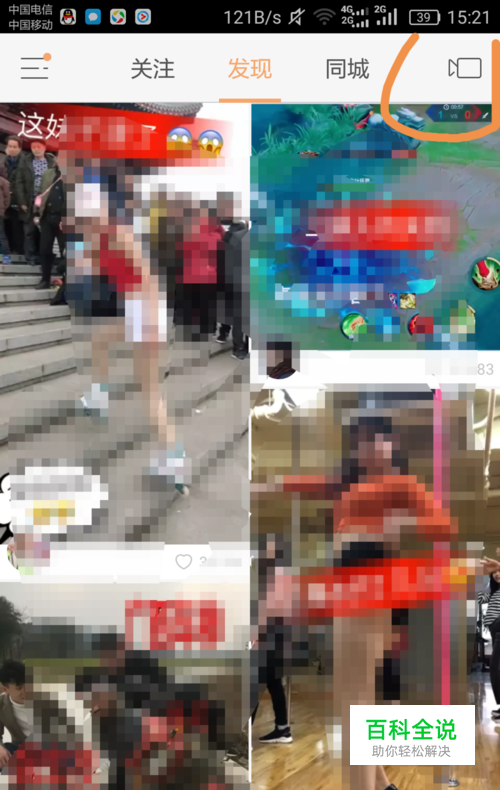 在进入快手App之后,我们看到右上角的那个摄像机,我们点击它,进入视频相关的页面中去