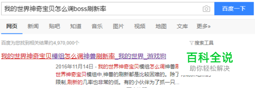 在百度搜索我的世界神奇宝贝怎么调boss刷新率的结果中,点击下图中的网页;