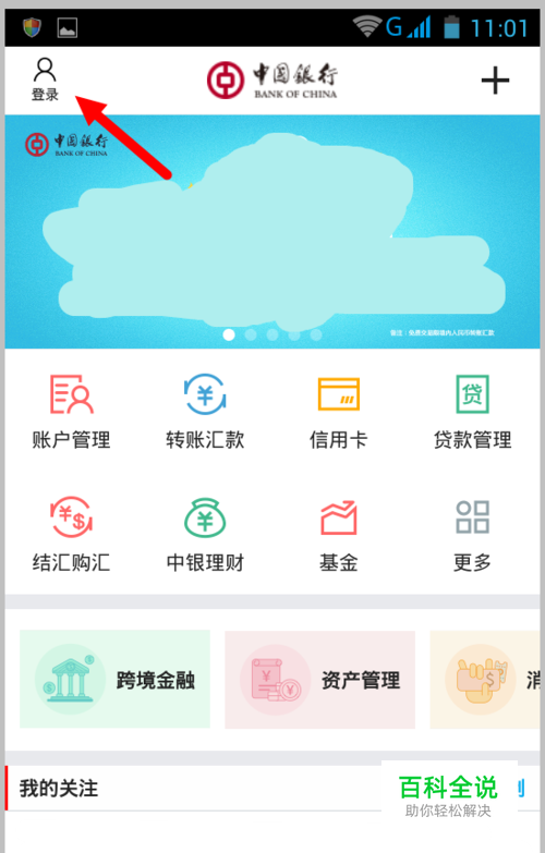 在中国银行手机银行首页,点击窗口左上角的“登录”按钮,进入登录页面。