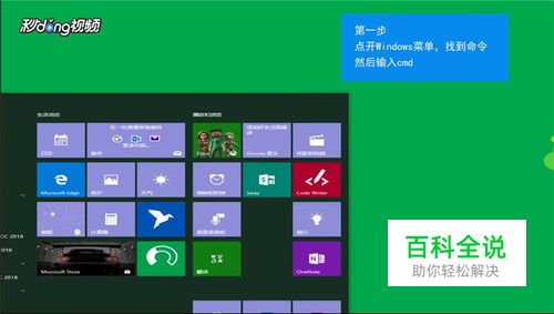 点开windows菜单,找到命令然后输入cmd。