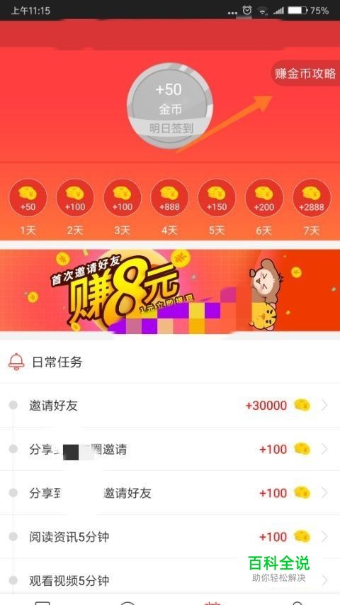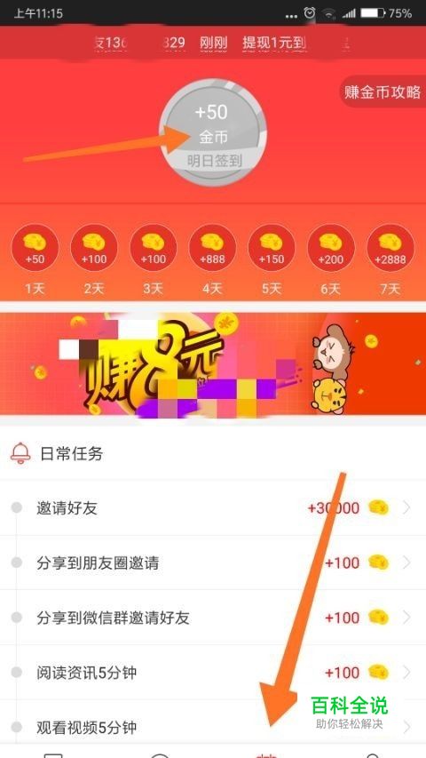 做任务赚金币。任务中心下面有很多任务,做完任务都可以得到金币,最后得到的金币可以兑换成零钱。