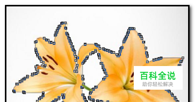 点确定后,花选区变为路径状态了。 然后,选取钢笔工具,对花路径进行一些调节。
