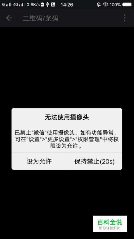 在微信提示无法使用摄像头权限的时候,直接开启权限。