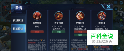主动技能2:梦魇钩镰 钩镰蓄力后,甩出连接敌人 并且可以二段进行甩出,这个技能还有一个功能是增加自身百分之十的输出,减少敌方百分之二十的输出,此消彼长。