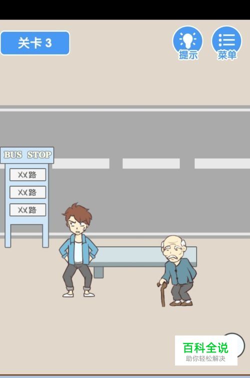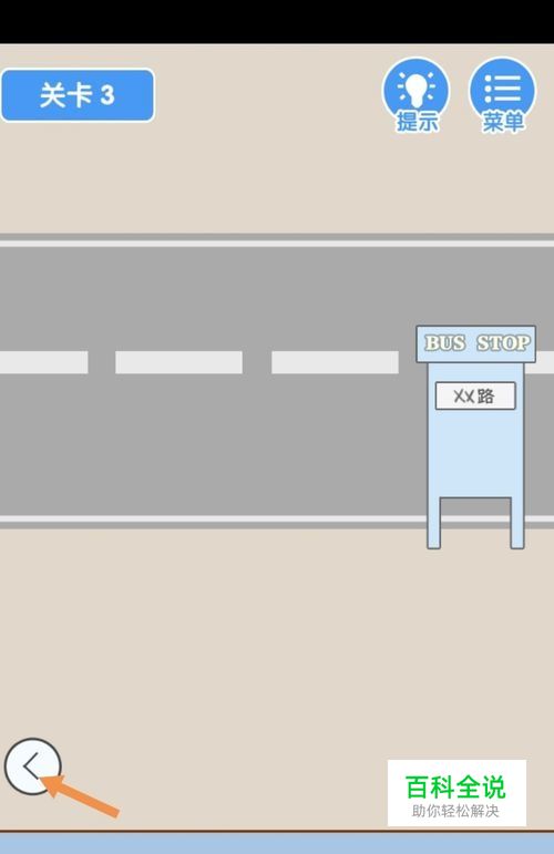 第3关先点击向右箭头到右边去。在右边,点击站牌后面的爆竹。