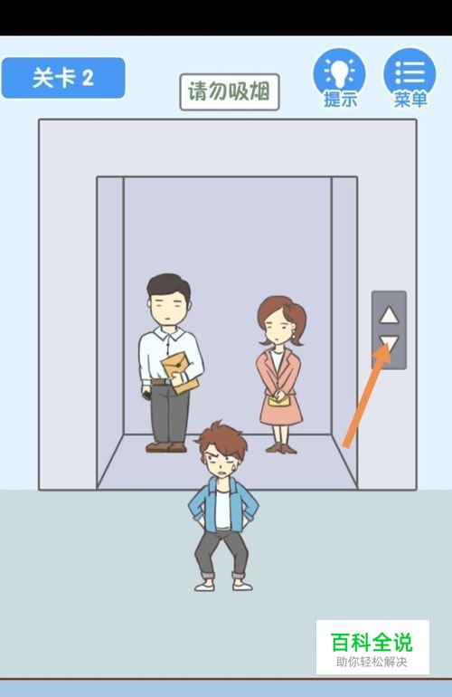 第2关先点击电梯上下箭头,电梯门关上后,点击男主就过关了。