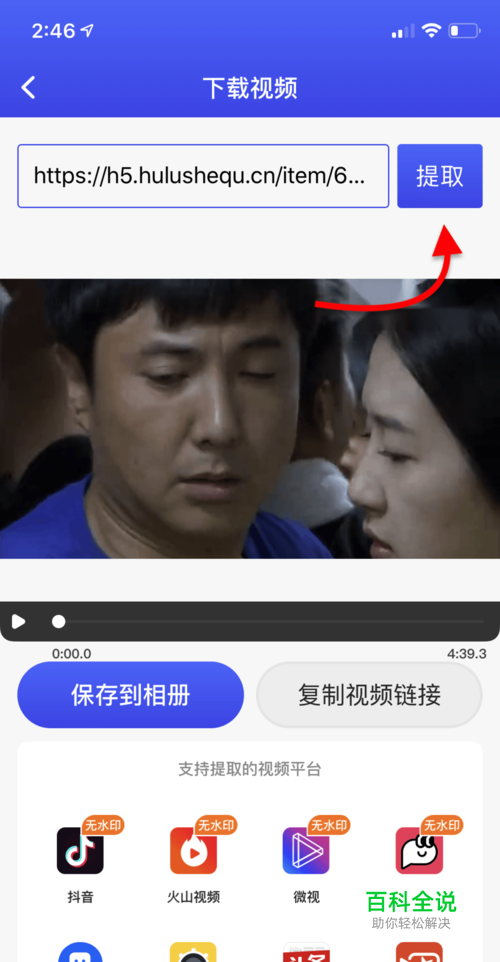 现在我们可以看到提取到的视频了,然后我们点击“保存到相册”,等待进度条走完我们就可以在相册中看到了