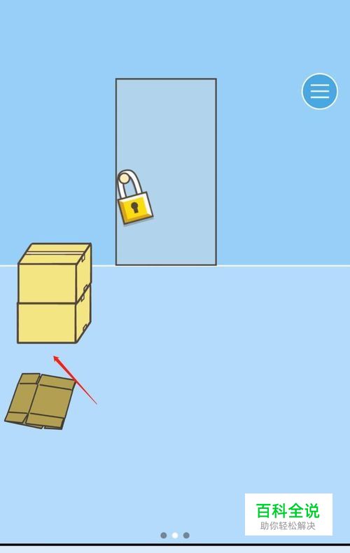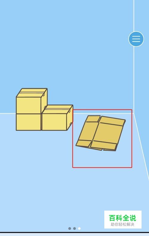 第13关,首先翻到第三页,取回没有打开的那个纸箱子。回到第二页将刚取回的那个纸箱放在原有的两个纸箱旁边,就会有送货员过来取走纸箱,门就打开了