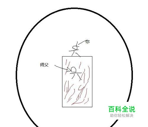 如图三,假如师父第一波扫左半圈,那么这个时候你应该移动到图四右半圈的中间位置,等待师父第二波幻灭,不要问我为什么一定要跑到中间,照做就行,等你翻车的时候你就懂了,后面的幻灭都一样,先朝你推一道波,躲掉这道波的同时要判断幻灭方向并且进行移动。