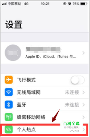 进入到设置界面后,找到“个人热点”并点击它。