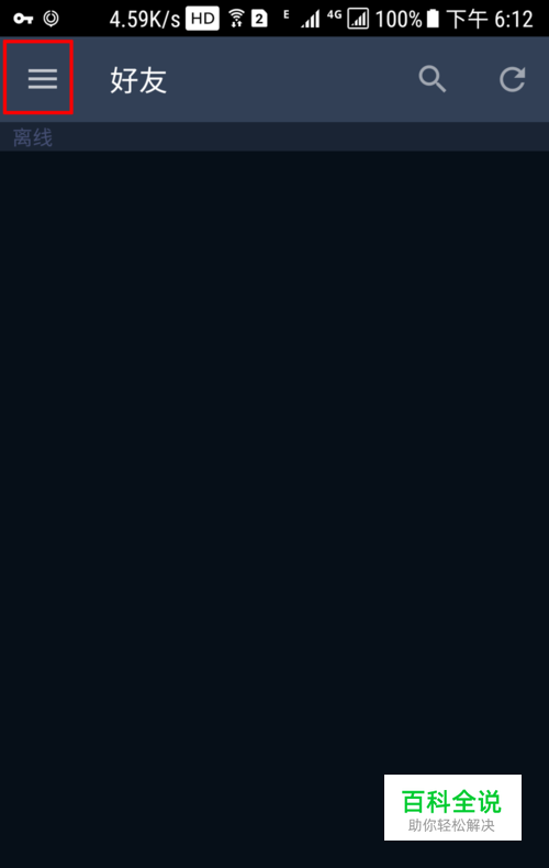 首先我们打开steam手机APP,然后选择上方的“菜单栏”也就是图标“三道杠”