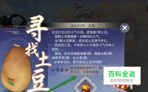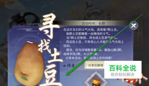 寻找土豆的活动,首先需要分享给好朋友,才能开启这个活动。活动开启以后,需要前往三个地方进行寻找土豆。