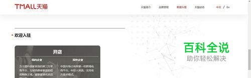 首先搜索搜索天猫进入天猫官网,如下图所示,进入天猫后找到商家支持下的商家入驻并点击进入。