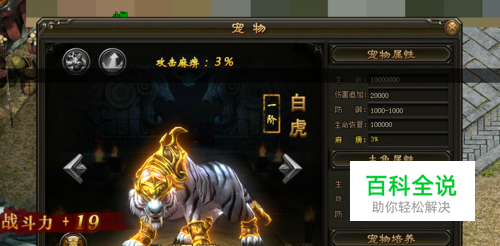 接下来让宠物出战,并升级当前的白虎宠物,让白虎的战力进一步提升,如图所示