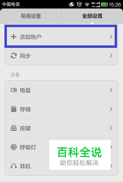 首先,打开手机,进入系统设置,选择添加帐户。