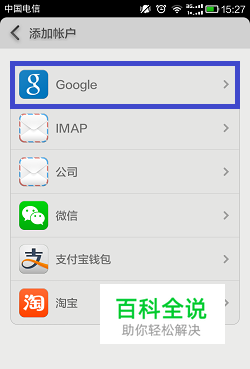 选择账户类别,此处选择Google。