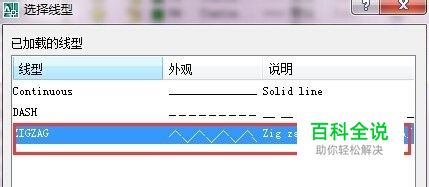 之后你会发现这个线型被加载了,然后点击这个虚线,点击确定,如图所示