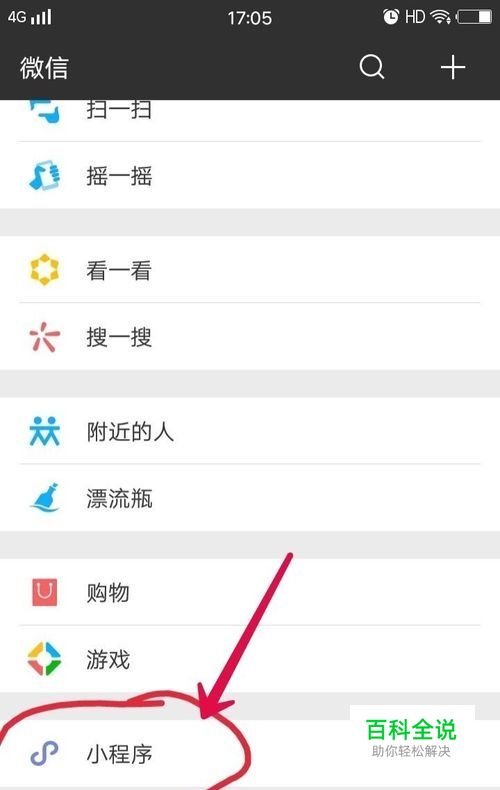 1、首先打开手机微信界面,点击“发现”进入搜索区,划到最下方点击“小程序”。