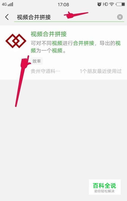 2、在搜索区搜索关键字“视频合并拼接”,搜索到软件直接点击进入下一步。