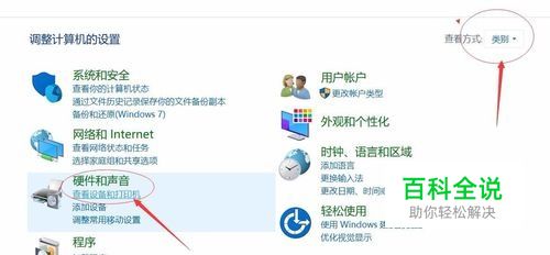 点击“硬件与声音”->“查看设备和打印机”,如下图所示:
