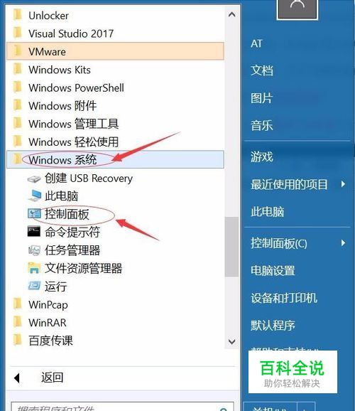 点击桌面左下角开始菜单->所有程序,找到“控制面板”,如下图所示: