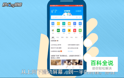 打开手机“QQ浏览器”,从上向下滑动屏幕,到一半的时候停住。