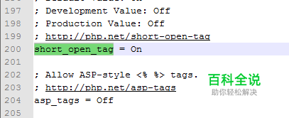 登陆服务器,在PHP的安装文件夹里找到了php.ini文件后打开,搜索“short_open_tag”,可找到文件里有两个地方含有short_open_tag,分别是: 1、 ;short_open_tag ; Default Value: On ; Development Value: Off ; Production Value: Off 2、 short_open_tag = Off