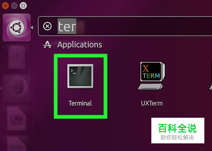 打开终端。点击菜单,然后找到终端程序。程序的图标是一个黑色的方框,上面有一个白色的“>_”。点击它。一般可以从菜单窗口的左侧栏中找到“终端”程序。 你也可以点击菜单窗口顶部的搜索栏,输入来搜索程序。