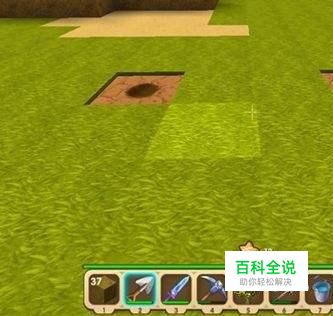 其次,拿着铲子轻轻地点一下地面,就出现一个小坑。