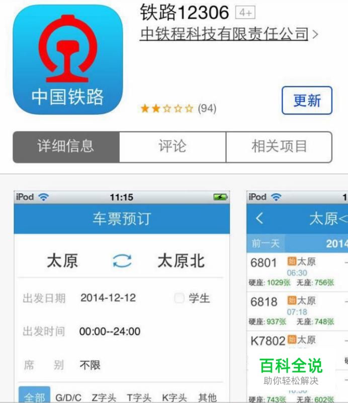 铁路12306:是中国铁路客户服务中心推出的官方手机购票应用软件。该软件具有车票预订、线上支付、改签、退票、查询、个人资料和密码修改等功能为。为旅客提供了极其方便的手机购票方式。