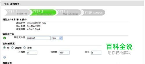 设置常规渲染参数 稍等几分钟,场景检测分析完之后,进入常规渲染参数设置画面(如下图)。该画面的相关说明如下:A)文件版本与渲染引擎:renderbus已经根据你选择的max文件自动分析出来,不能修改。B)输出文件名:渲染输出的文件名,只能输入英文字母或者数字,并选择输出的图片格式。C)选择帧设置,可以选择序列帧、详细帧,单帧。如果选择序列帧:例如从0到150帧,步长为1,表示渲染第0帧到第150帧;如果步长为5,表示渲染第0,5,10,15...150帧,每5帧渲染1帧。 如果选择详细帧:输入要渲染的具体帧,以逗号隔开,例如输入:1-20,120 表示渲染第1到20帧,以及第120帧,一共21帧。如果选择单帧:输入要渲染的单帧,只能输入一个数字。注:上述输入的帧数必须是正数,不能输入负数帧。D)输出图像大小设置:宽度、高度。Renderbus已经自动分析出场景中的默认设置大小,如果无误就不需要修改。E)相机:Renderbus已经分析出场景中的所有相机,点击下拉框选择要渲染的相机。G)其他参数:使用max命令行渲染的其他的命令行参数(一般不要需要填)。 H)中文转换:此选项只针对max2008、2009才会出现。如果场景的贴图带有中文文件名,请勾选此项(默认已经勾选),在渲染的时候,自动把相关的文件名转换成英文文件名。如果中文名不转换成英文名,使用max2008或者2009渲染,在渲染的时候,有可能掉贴图。I) 贴图丢失检测:Renderus自动分析场景,并将场景用到的贴图、光域网、vrmesh、流体文件、动作缓存等等所有相关文件均显示在表格中。如果文件缺少,会以红色字体显示lost,并排在最前面。如果贴图存在,会显示found。对于缺少的文件,可能是您遗漏上传了,此时点击表格旁边的“upload”链接,可以立即通过网页上传。当然,你也可以使用ftp上传上来,然后点击“refresh”重新检测一遍,直到缺少的文件全部found。 当有用的文件都找到以后,点击“下一步”,进入Vray参数设置画面