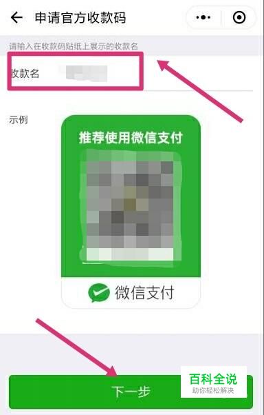 然后填写收款码贴纸上的收款名,点击下一步,填写收货地址或定位地址,付款即可,等待官方发送贴纸。如图所示。
