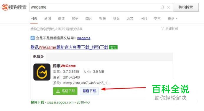 打开搜狗搜索引擎搜索“WEgame”然后将软件下载 安装 如图
